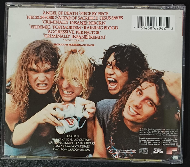 Reign in Blood foi bem recebido por críticos e fãs. Relançado em 1998 com 2 Bônus Tracks.
